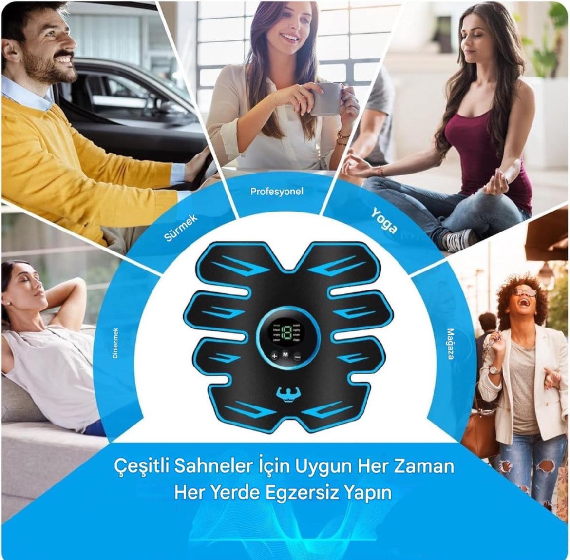 Mert gibi sen de spor salonuna gitmeden karın bölgeni çalıştırabilirsin. EMS teknolojisiyle, bu cihaz yağ dokusunun altındaki kasları uyarır ve düzenli kullanımda daha sıkı bir karın görünümü sunar.
